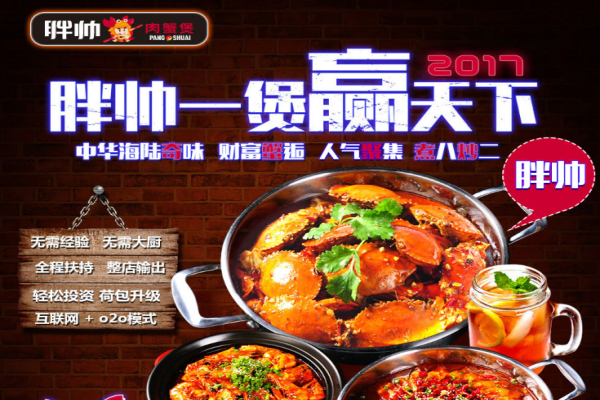 胖帅肉蟹煲是区别于传统生产模式的大胆尝试。精选优质原料,添加独特食材,丰富菜肴的口感,带给食客非凡的美食体验。选用上乘的原材料,结合先进的生产方法,让顾客品尝到美味健康的食品。秉承目前的就餐模式,加上快捷友好的服务和时尚新颖的店面设计,深得广大消费者的认可和支持。通过充分吸收中西饮食文化精髓,为消费者提供物超所值的特色食品,弘扬新时代的品牌特色,使消费者的喜爱程度得到一定程度的提高。