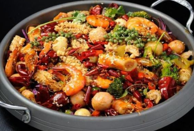 麻辣香锅是源自四川的美食,香锅中可以加入丰富的食材,有肉类、海鲜,以及豆制品鱼丸等,然后加入了熬制的底料,就可以出锅一份正宗的麻辣香锅了。