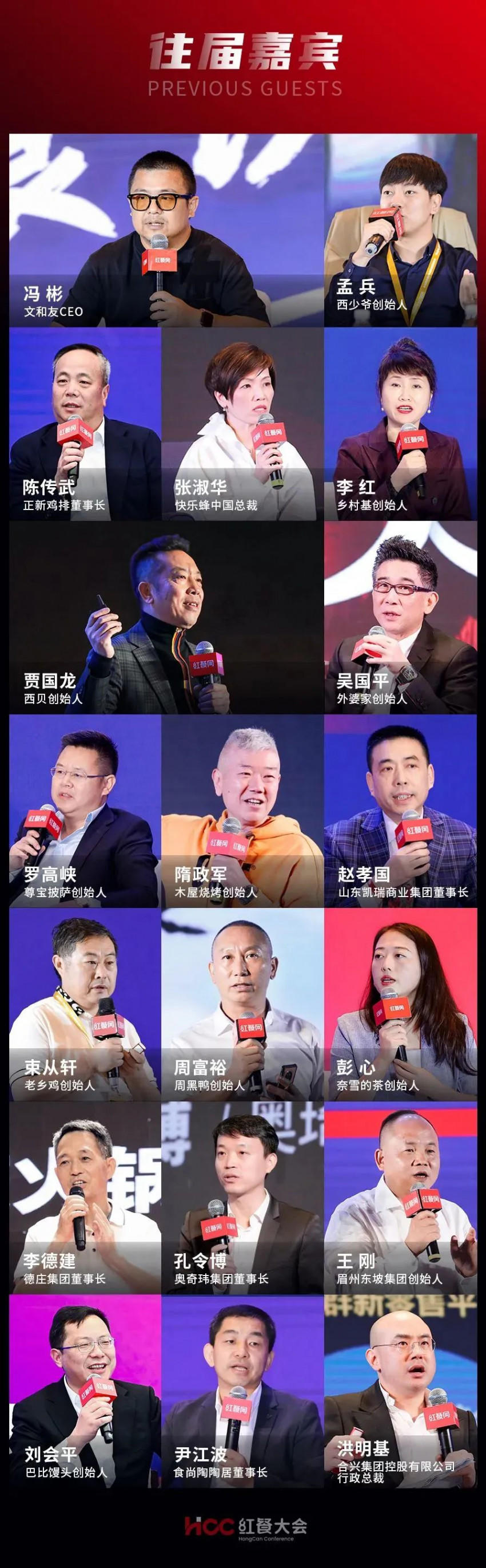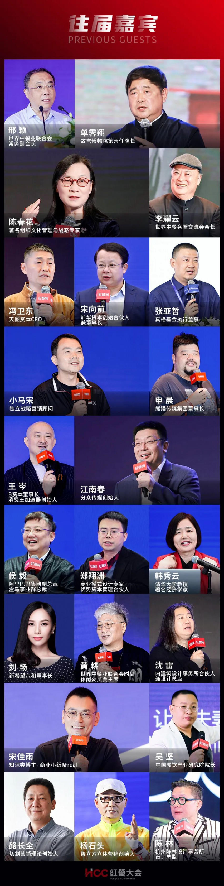 据统计,往届餐饮品牌力峰会的出席嘉宾均来自餐饮产业的品牌创始人及高管、供应链服务商、商业地产、咨询机构、投资机构、媒体、学者和跨界影响力人物等产业领袖和产业实践者,大咖云集,阵容强大,现场参会人数累计达30000+人。
