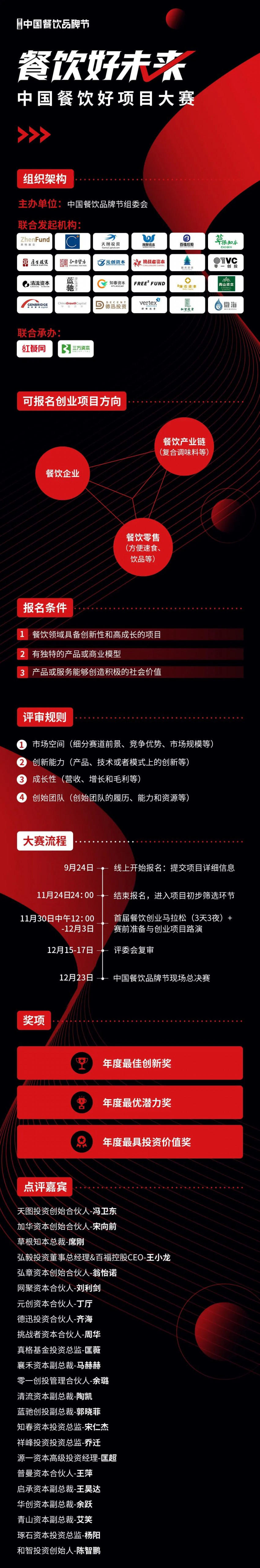 由商文在线、三万资本携手真格基金、天图资本、加华资本、网聚资本等二十多家知名投资机构共同发起的 “餐饮好未来—2021中国餐饮好项目大赛”已于9月24日正式启动。此次大赛,餐饮上下游企业报名热情空前高涨,获得了众多餐企的报名参与(目前报名仍在进行中,报名请咨询:黄女士 18589229024)。