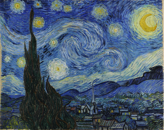 这一年爱因斯坦只有10岁。很奇怪,为什么一个疯狂的艺术家能够画出一个非常经典的符合爱因斯坦理论的一幅抽象画。我们知道梵高一生深受梅毒折磨,有时我在想也许梅毒可以帮我们更好地看清楚这个世界。
