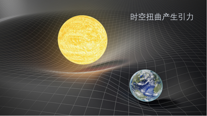 我们的时空其实就像一个巨大的网,在这个网里面当一个巨大质量的物质出现的时候,其实对这个网产生了造成巨大的扭曲(就像铁球掉入一个平铺的床单),而这个时空扭曲的曲率就等于引力,这个非常简洁优美的理论,就是爱因斯坦广义相对论。这是个改变世界的理论。