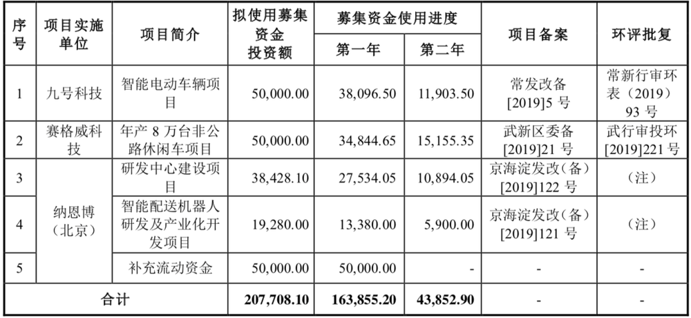 此次,九号公司募集资金总计达13.34亿元,将投入智能电动车辆项目、年产8万台非公路休闲车项目(全地形车)、研发中心建设项目、智能配送机器人研发及产业化开发项目和补充流动资金。其中,研发中心建设项目和智能配送机器人研发及产业化开发项目将进一步提升公司的技术研发能力。