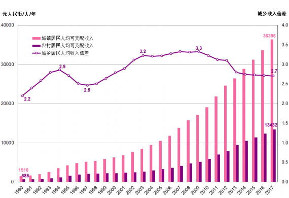 而到了2019年,全国居民人均可支配收入已经跨入了3万元大关;