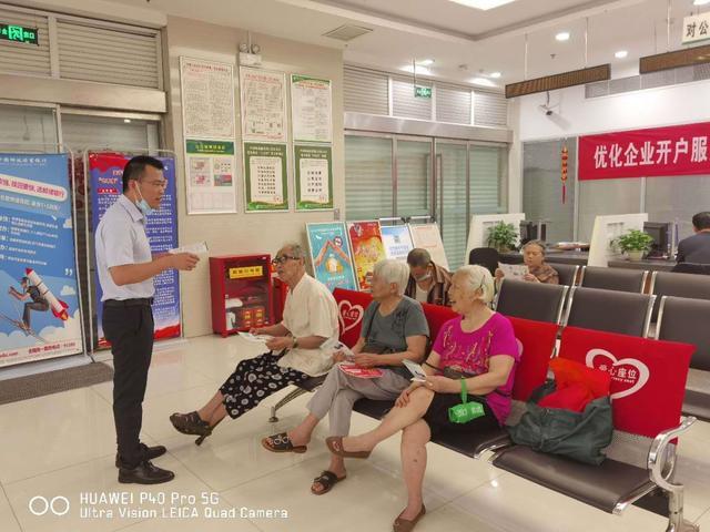 网点工作人员积极向柜台办理业务的客户及等候区的客户发放宣传折页并现场讲解新版人民币的防伪特征、快速识别假币的方法、假币常见骗术与防骗等知识。