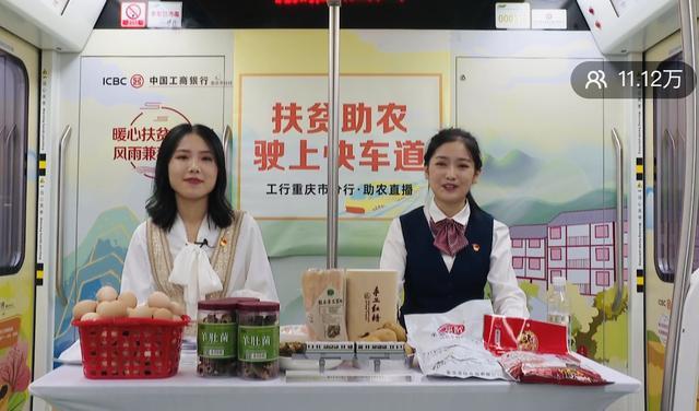 今年7月,工商银行重庆市分行在轨道交通环线推出公益扶贫专列,直观呈现了该行定点扶贫的彭水三义乡优质农土特产品和特有的风土人情。此次直播,该行再次以环线列车车厢这个新颖、独特的场景为载体开启网络带货,借轨道交通带动社会发展的美好象征,将贫困地区的特色产品近距离展示在主城400万精英白领人群面前,希望通过轨道交通的客流、人气助力农产品销售,进一步提升扶贫成效。