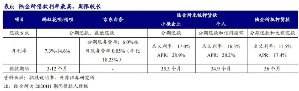 陆金所的零售信贷主要包括有抵押贷款和无抵押贷款,有抵押贷款借款者均为小微企业,无抵押贷款包括小微企业和个人消费,20H1新增贷款规模中,69%为小微企业贷款。陆金所贷款利率相对较高,无抵押贷款年利率超28%。