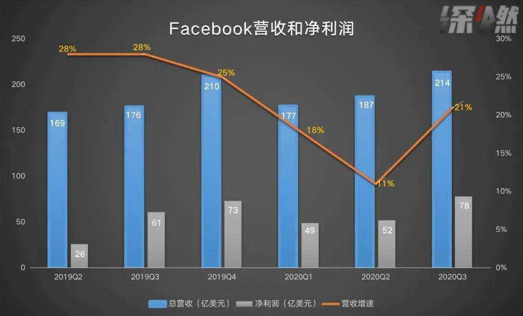 随之回暖的还有利润,相比前两个季度,三季度Facebook利润环比增长53%至78亿美元。