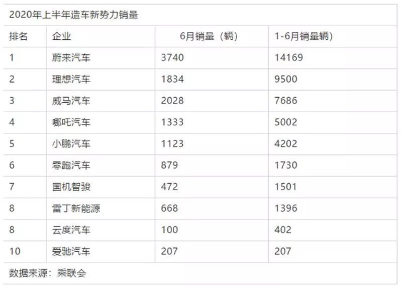 今年上半年,20家造车新势力总计上险4.4万多辆,其中,蔚来、威马、理想、小鹏、合众前5家企业占比高达91%;速达、零跑、国机智骏三家企业在1000辆左右;爱驰、金康、云度三家过百;新特、长江、国金销量为两位数;天际、奇点、天美等车企仅为个位数。