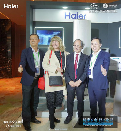 在现场的交流和展示中,海尔空调推出的一款能够"洗空气"的新物种引起了与会专家的关注。受邀参会的诺贝尔奖获得者迈克尔·莱维特表示:如果我们能够把这样的产品推广到全世界去,肯定是很棒的事情。
