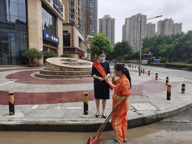 ▲合川支行员工为清扫路面泥沙的清洁工送上热水
