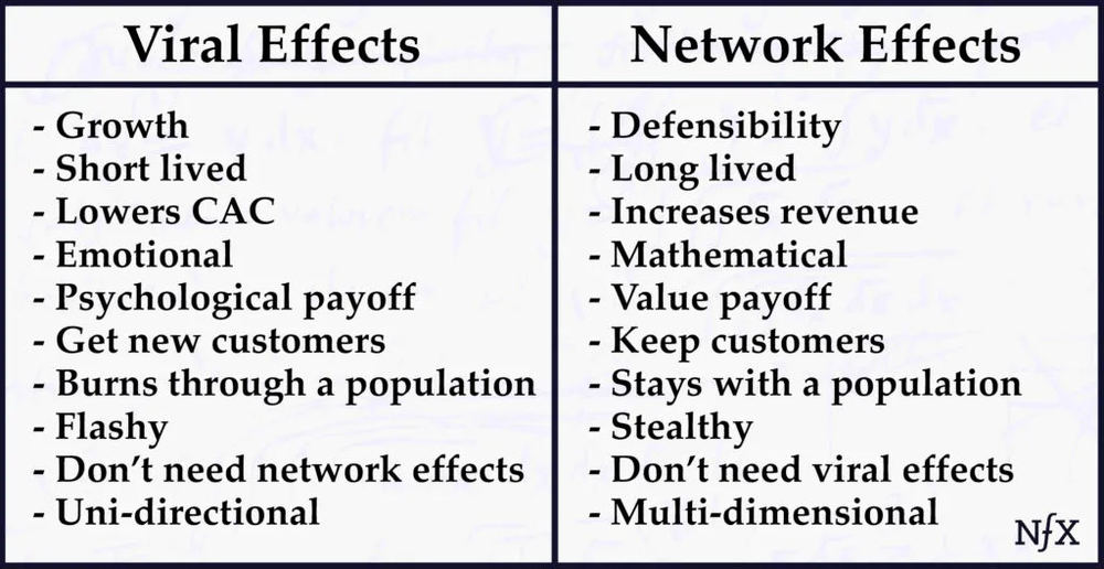 此外,在建立病毒效应与网络效应方面,存在非常不同的剧本和心理模型。不了解这些区别将对创业公司的长期成功造成伤害。