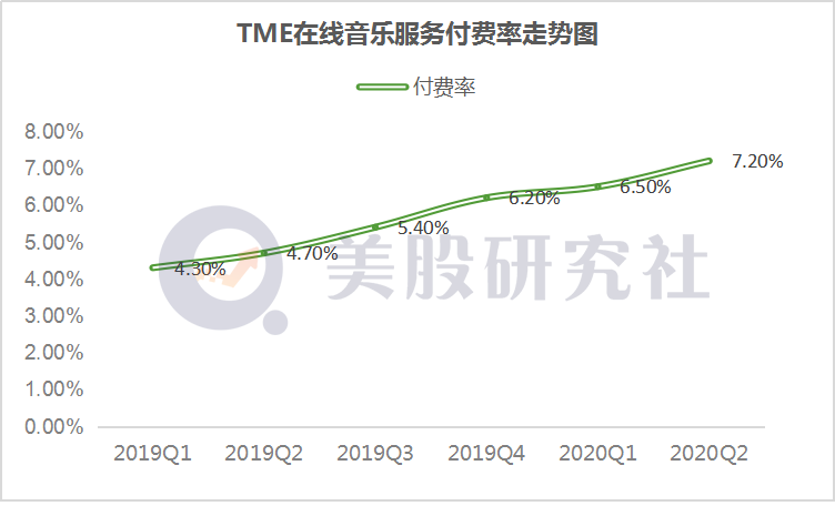 事实上,在线音乐订阅收入的增长离不开音乐付费率的有效提升。今年一季度,腾讯音乐的在线音乐付费用户同比增长50.4%达4270万,在线音乐付费率为6.5%;二季度,在线音乐付费用户同比增长51.9%达4710万,付费率相比去年同期的4.8%快速增长至7.2%。