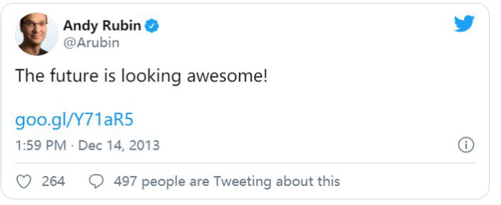 在这一愿景下,谷歌宣布收购波士顿动力。当时,Andy Rubin还发了这样一条推特