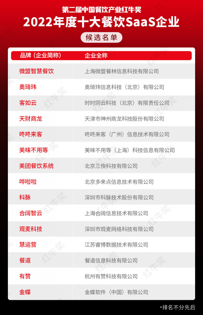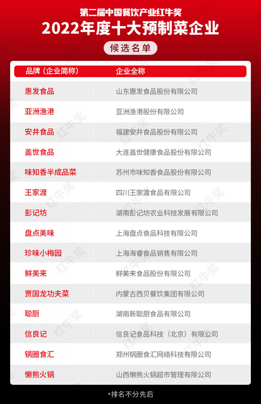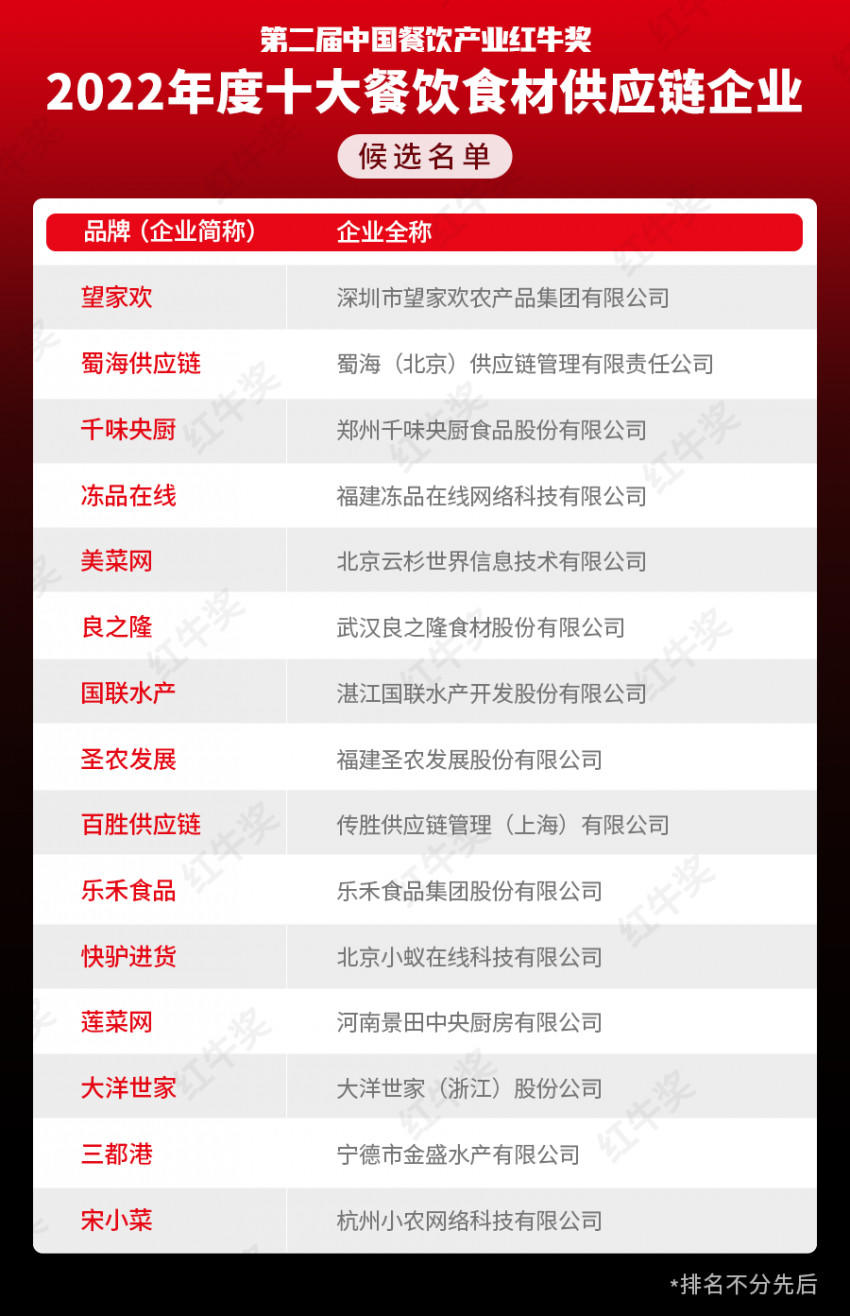 “第二届中国餐饮产业红牛奖”候选入围企业名单已经公布,最终奖项花落谁家,让我们拭目以待。