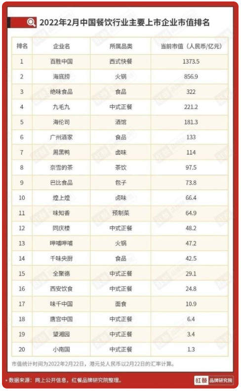 市值仅次于百胜中国的海底捞国际控股有限公司(海底捞,6862.HK)2021上半年净利润0.97亿元,但仍未恢复疫情前的水平;同样,市值位居第四的九毛九国际控股有限公司(九毛九,9922.HK)尽管2021年上半年净利润同比由亏损0.86亿元转为盈利1.86亿元,但仍没摆脱各大投行对其降低评级的“命运”。