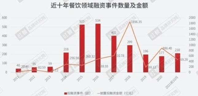 事实上,在高达数百起的融资事件中,餐饮老板的确也看到了资本所带来的助推作用。据《2021中国餐饮品牌力白皮书》统计数据显示,2020年餐饮行业的投融资事件高达177起,融资金额合计886亿元。步入2021年,融资热潮非但没有平缓,反而更加强烈,仅前十个月,融资事件就多达210起,披露的融资额近70亿元。