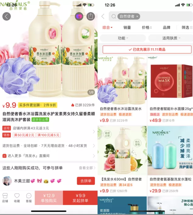 自然使者是臻颜增长最快的品牌,定位学生和初级白领,主打渠道是在这两类人群有较大优势的拼多多。自然使者开店2个月后,手膜和足膜产品成为对应品类前2,月均单量超5万。自然使者能够如此顺利,与其加入拼品牌新品牌计划有直接关系,这一计划结合拼多多“拼”模式聚集大量订单的独特能力,以“反向定制”、“品销合一”为主抓手,定制“爆款”,一边给消费者提供高性价比的供给,另一边解决国产品牌的增长难题。