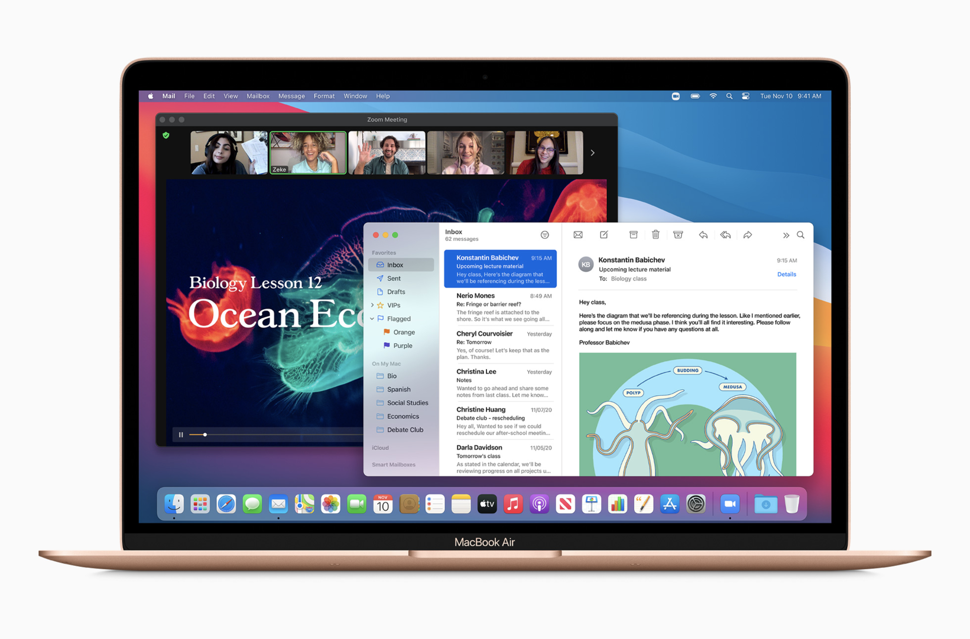 在 macOS Big Sur 和 M1 芯片的支持下,Mac 用户能使用的 app 数量比以往大大增加。所有 Apple 开发的Mac 软件现均已支持Universal,并可在搭载 M1 芯片的系统上原生运行;而且 iPhone 和 iPad app 现在也能直接运行于 Mac。