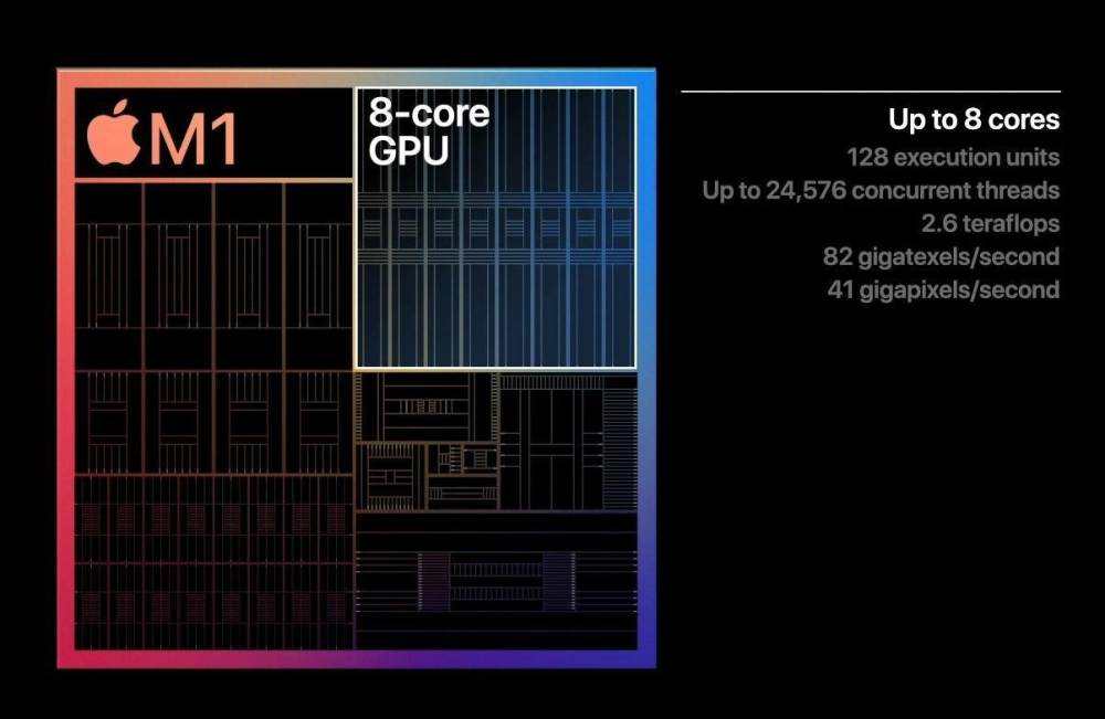 苹果M1处理器集成了大量传统计算机必须的接口和总线,因此有了它在Mac产品的设计上无需在主板上安装多种不同的芯片。同时作为SoC芯片组系统,M1处理器还拥有独特的架构,并且集成了GPU与神经引擎网络。