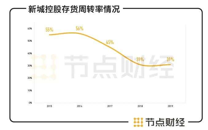 财报显示,新城控股近几年的存货周转率有明显下降,2020年第三季度其存货周转率仅为0.21,低于此前的高峰水平0.5。存货周转率是企业一定时期主营业务成本与平均存货余额的比率,用于反映存货的周转速度。存货周转率越高,表明企业存货资产变现能力越强。