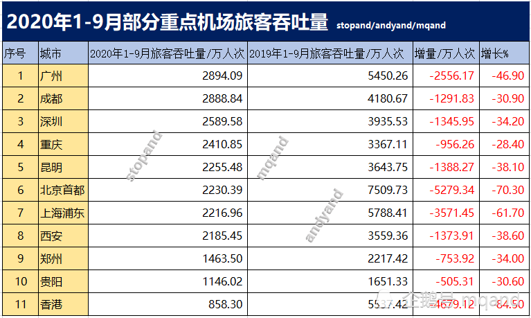 如上所示,白云机场下降幅度也高达46.9%,但相较于京沪港三强来说,下降幅度却是最低的,这也是白云机场此次逆袭为第一的重要原因。