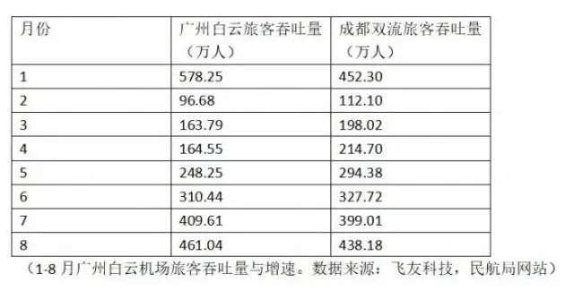直到7月,广州才开始发力,反超成都成为全国最繁忙的机场,但成都仍然排名全国第二。