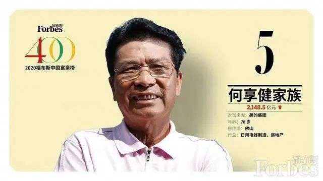经历过生死考验后,何享健和他的美的浴火重生,其个人身家从去年的第6名上升至今年的第5名。