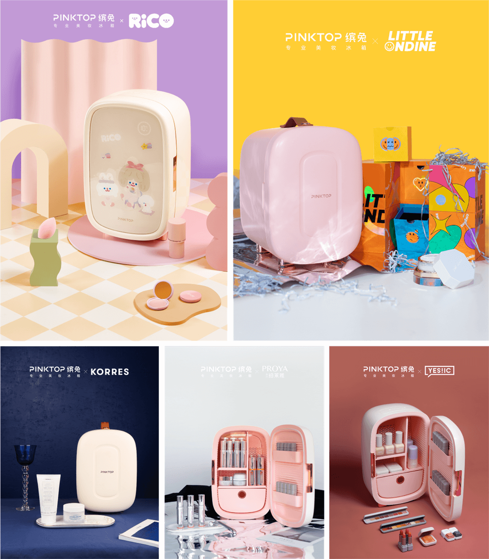 此外,推出联名款也是缤兔营销中的重要手段。今年双11,缤兔联合国内顶尖潮流IP孵化公司“寻找独角兽”(Finding Unicorn),推出了与韩国知名潮玩IP“RiCO”的联名款美妆冰箱,全球限量首发500台。