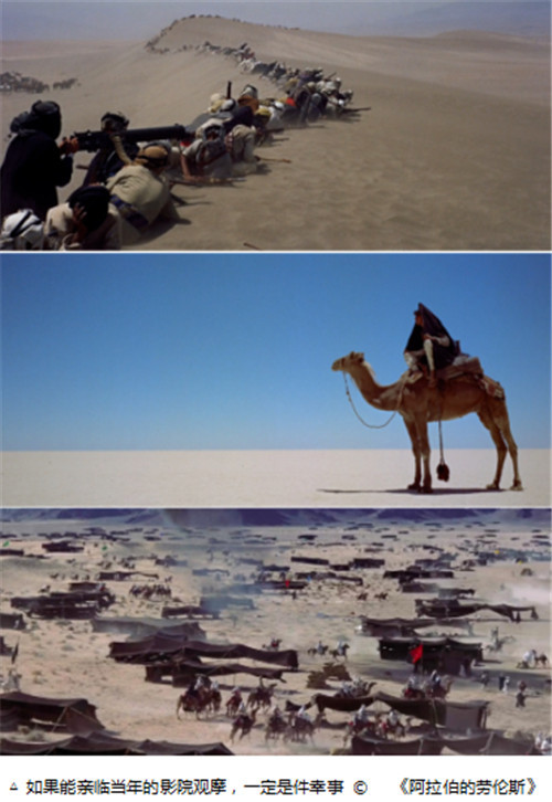 《阿拉伯的劳伦斯》上映时,电影院通常要安排四到五位放映员照看放映机,才能保证该片顺利放完。可想而知,电影人们对这份对沉浸式放映效果的追求,在当年必定使得该片呈现出了一份惊人的陆上风景。