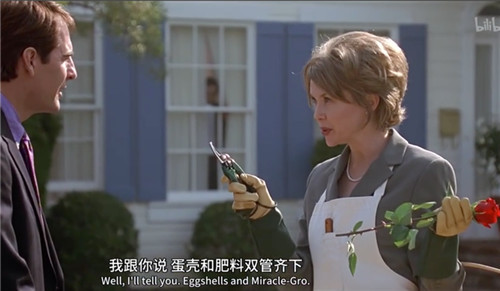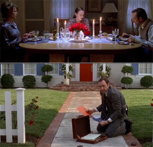这部讽刺美国中产阶级的佳作开篇就有一段对白:“要想把玫瑰(红色)种得更好,就要用蛋壳(白色)与美乐棵肥料(蓝色)。”