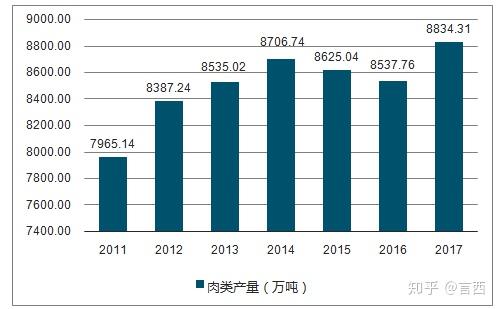 作为卤菜行业的上游供应源头,近年来禽畜养殖业规模不断扩大,促进肉类产量增加。据调查数据显示,2017年中国肉类总产量9114.61吨,休闲卤制品是休闲食品行业中增速最快的子品类,2018-2020年其市场规模CAGR接近18.8%,市场规模超千亿。