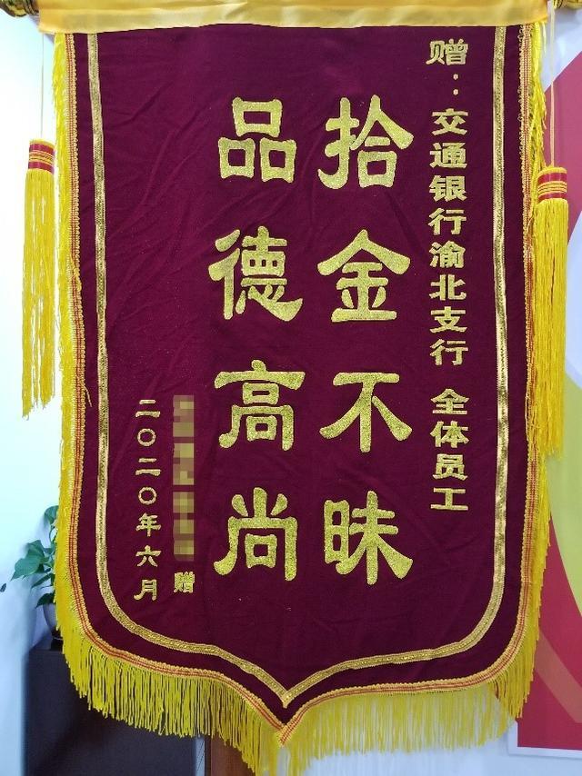 近日,来自渝北两路的张先生和老伴带着一面锦旗同行来到交行重庆渝北支行营业厅,感谢该行员工拾金不昧,且主动想办法联系归还。