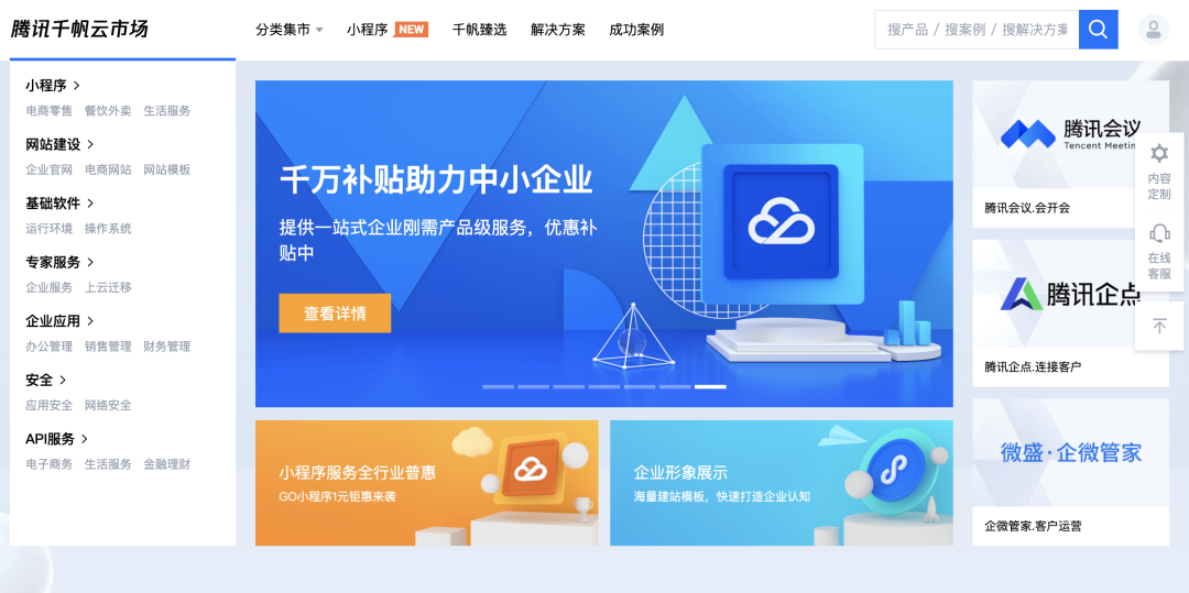 通过千帆计划,腾讯云还搭建了一个面向外部 SaaS 服务商的生态。这个平台与当年 QQ 的开放平台十分相似,只是它是一个 to B 的平台。各行各业已经有现成解决方案的服务商,可以通过入住这个平台来为腾讯云上的客户提供服务、获得收入。