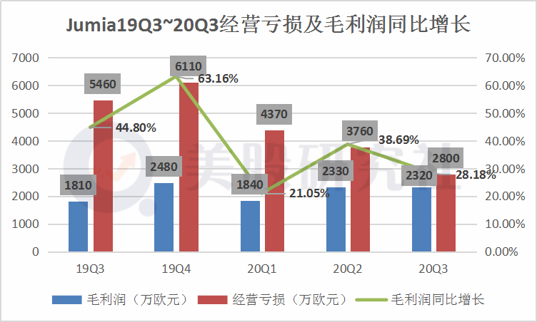 由于非洲人均GDP低,消费水平不高,对于网上购物信任度也较低,虽然Jumia提供货到付款的服务,但商品成交率不高,所能够得到的佣金收入事实上也比较低,但今年疫情使得许多商品无法在线下购买,线上购物成为刚需,商品的成交率大大提升,此外是由于Jumia较高佣金率类别(包括时装,美女或快速消费品)商品的销量比例增加,就使得佣金收入较去年同期大幅度增长43%。