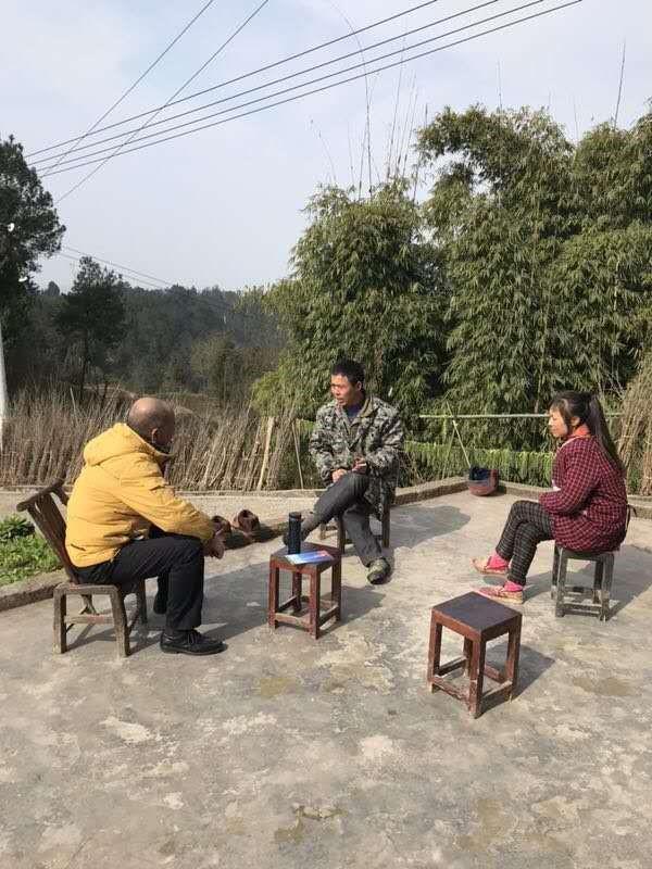张步忠(中)入户走访,向村民讲解扶贫政策