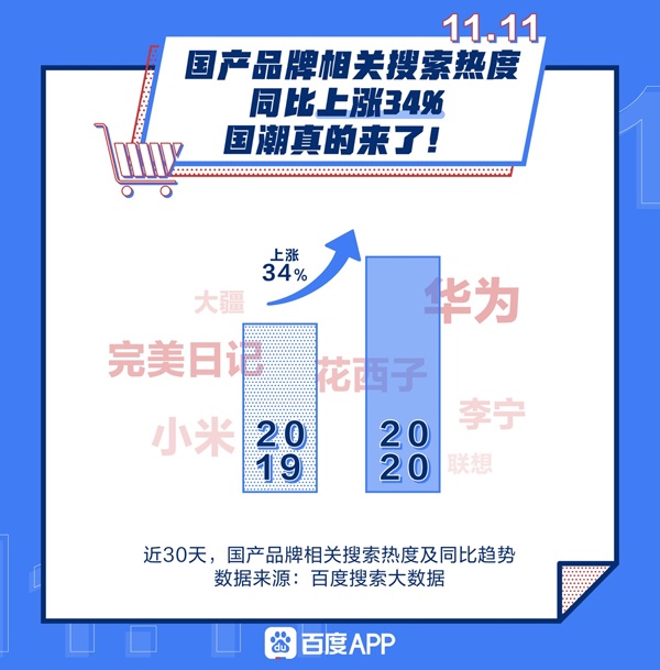 百度搜索大数据:双十一搜索热度大涨263%,新国货消费浪潮再度崛起