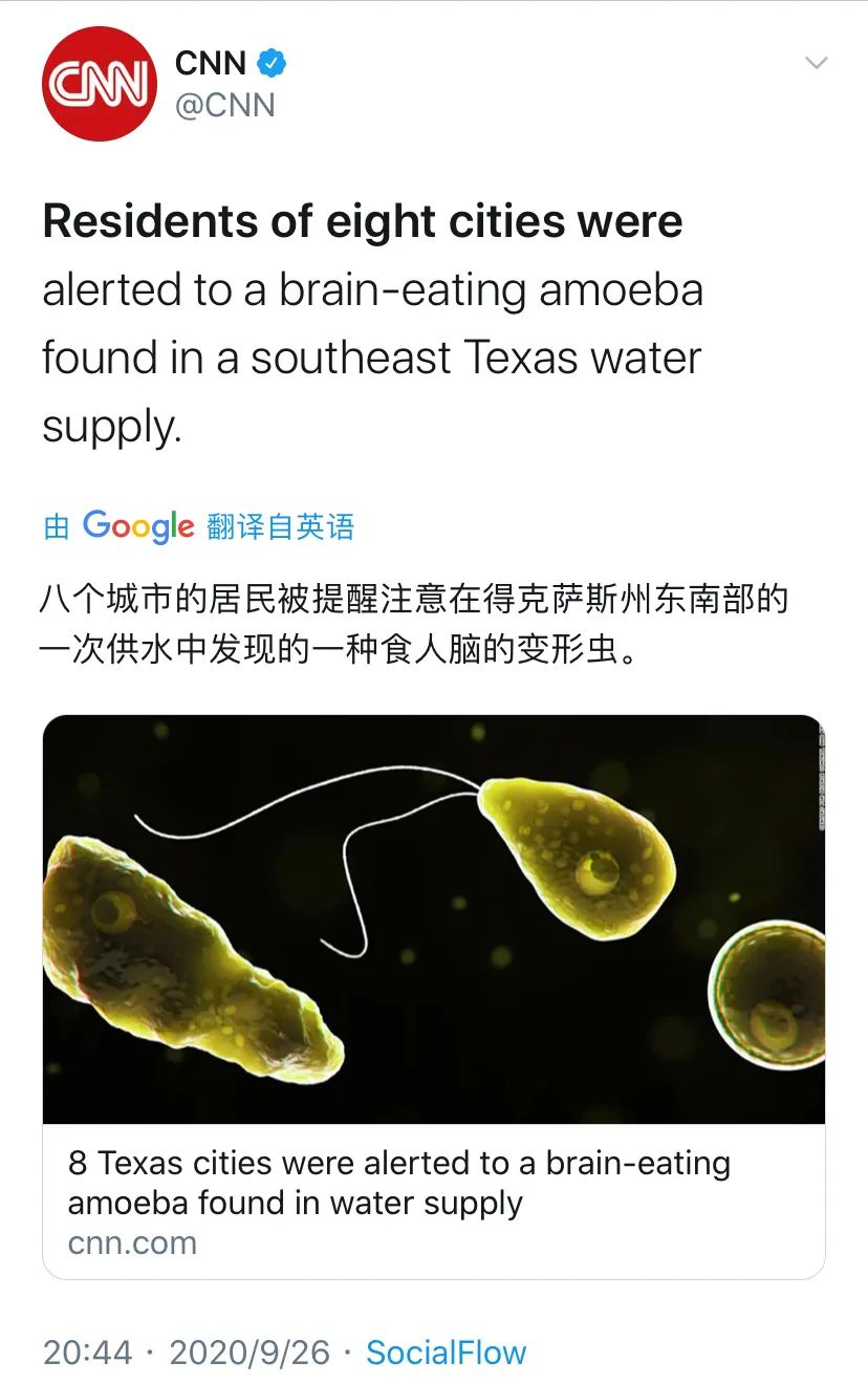 甚至于刚过去的7月福罗里达州饮用水中发现食脑虫、9月德克萨斯州供水中发现食脑虫等事件……喝自来水到底是否卫生,恐怕已经没人敢100%肯定了。