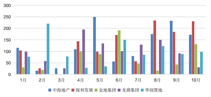 除此之外,龙湖的投资力度则相对放缓。从投资金额来看,龙湖9、10月份投资金额连续下滑,且环比降幅分别达到39%、66%。