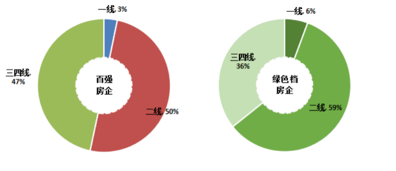图:百强房企、TOP50房企中典型绿色档房企9-10月拿地能级分布情况(按建面)