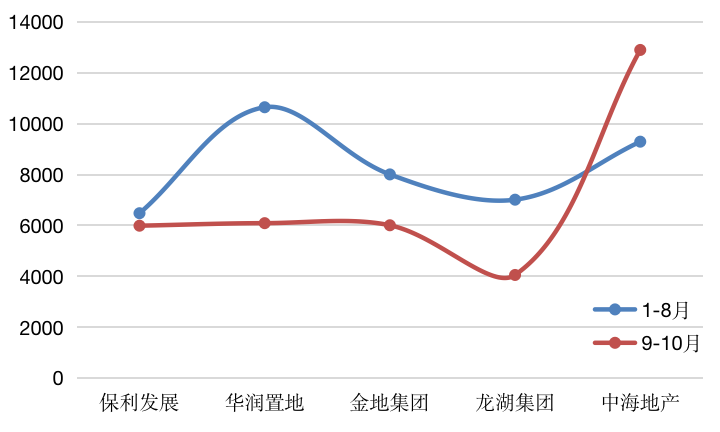 图:TOP50房企中典型绿色档房企1-8月、9-10月拿地成本(元/平方米)
