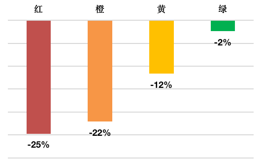 具体来看,红色档位房企9、10月份平均投资金额较前8月平均下降了25%,橙色档位房企也大幅下降了22%,黄色档位房企投资力度降幅则缩小至12%。