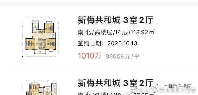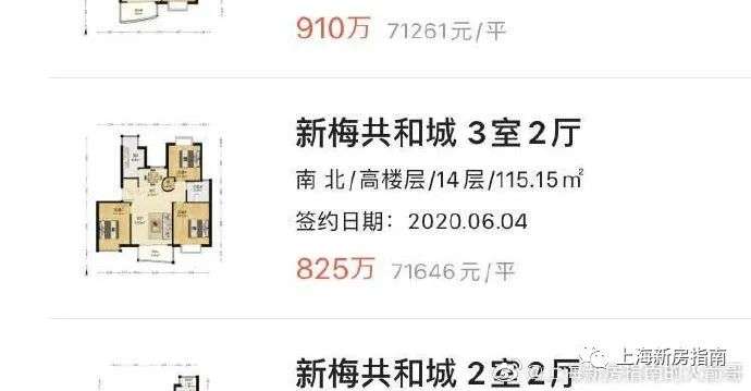 我们的矩阵号上海新房指南作为一个大宁区域的房价跟踪,这是2020年6月4日,新梅共和城115平三房在lianjia的成交数据: