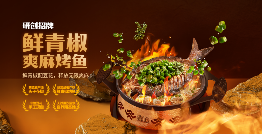 据悉,今年以来探鱼已经进行了6次的大单品创新。首创的鲜青椒爽麻烤鱼引领行业口味风向标,4月推出了鲜青椒葱葱烤鱼,11月和悲伤蛙联名推出了新的鲜青椒蛙哈哈烤鱼。“探鱼基本保持两月上新的频率,持续研发新品,从而保证产品的新鲜感。”探鱼创始人王力加介绍道。