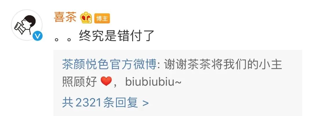 最有CP感:茶颜悦色&喜茶把“错付”变“联名”“相逢一笑泯恩仇”在营销领域,用“多一个朋友多一条路”来形容品牌与对手的关系最适合不过。说到良性竞争,就不得不提喜茶和茶颜悦色的“错付连续剧”。今年3月喜茶在官微发起抽奖活动,可最终却抽到了竞争对手的粉丝,中奖者名为“等一杯茶颜悦色”。抽奖结果一出,喜茶和茶颜悦色立马登上了热搜,以至于网友纷纷调侃“终究是错付了”,更是在线喊话“干脆出个联名”。