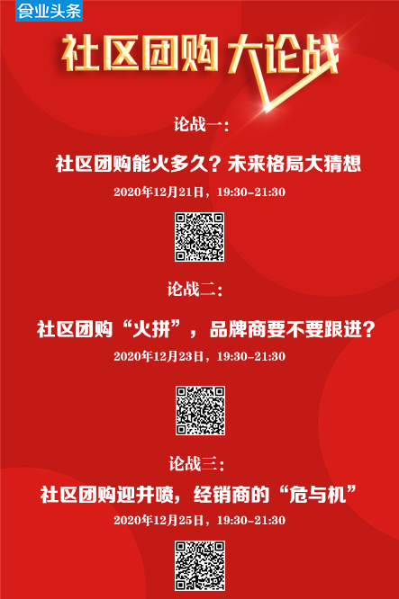 此外,12月23日19:30《社区团购“火拼”,品牌商要不要跟进?》 、12月25日19:30《社区团购迎井喷,经销商的“危与机”》两场直播,欢迎继续关注!