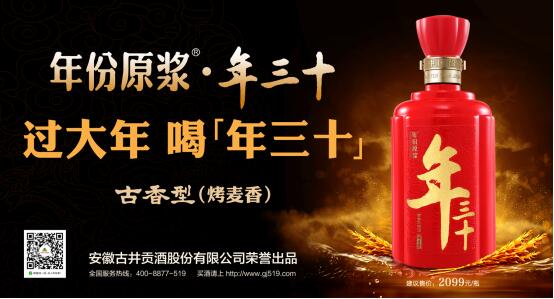 酒到情谊到,在这个团聚时刻,喝到有里有面的好酒,既彰显了个人品味,又表达了温暖祝福。但年三十喝什么?年三十送什么?成为无数中国人犯难的问题?为衍生新的年俗文化标签,解决中国人在春节阶段消费白酒时“买酒难、用酒难、送酒难”的各种需求,2021新春来临之际,古井集团隆重推出——“年份原浆·年三十”产品,属于古井贡酒独有的“古香型(烤麦香)”更是赋予这款产品的又一加持。