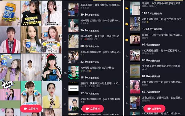 在抖音短视频平台上,品牌话题#30天轻松烧脑计划#下,吸引了众多“自来水”用户发布2430推荐视频,累计播放量将近6000万频次,在优质内容更新极快的抖音平台内,一度造成刷屏现象。