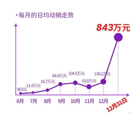 每月的日均动销从863元增长至8437051元,增长9776倍!