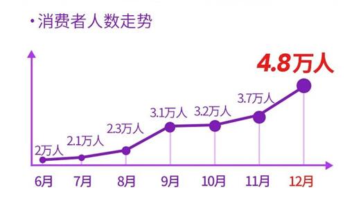 累计消费者人数,从20348人增长至48797人,增长了28449位!